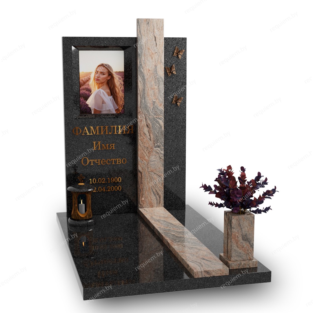 Памятник может быть изготовлен из любого вида гранита, любых размеров и толщины, а также с любым выбранным художественным оформлением.