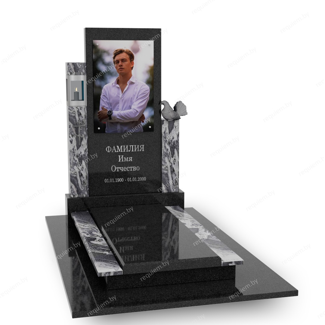 Памятник может быть изготовлен из любого вида гранита, любых размеров и толщины, а также с любым выбранным художественным оформлением.